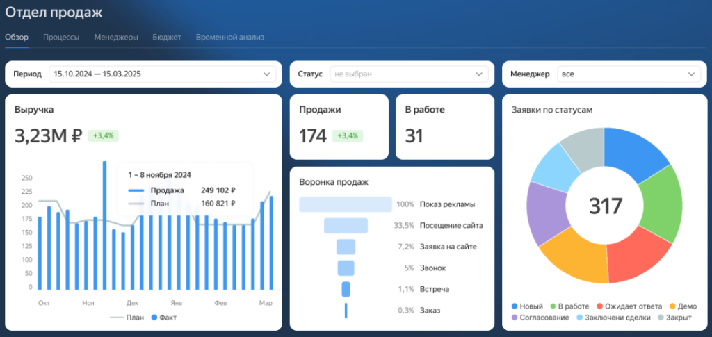 Какие метрики стоит отслеживать в отделе продаж через Yandex Datalens